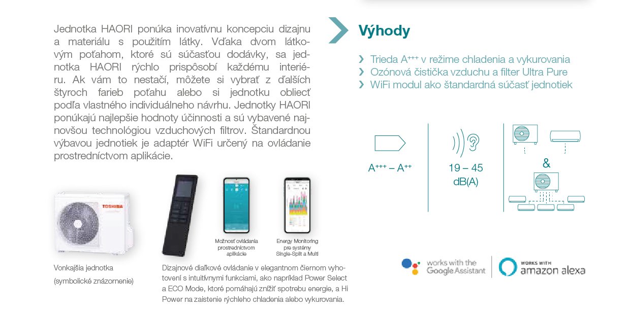 TOSHIBA HAORI je prémiová klimatizácia z vyššej strednej triedy, ktorá je nielen technologickou špičkou s maximálnou energetickou účinnosťou A+++, ale aj Víťazom DESIGN AWARD 2021. Spája japonskú technickú precíznosť s neopakovateľným štýlom.