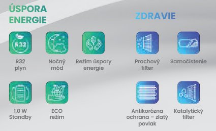 Vysoká Účinnosť: Model dosahuje energetickú triedu A++ pre chladenie (SEER 7.0) a A+ pre vykurovanie (SCOP 4.2).