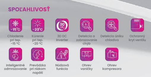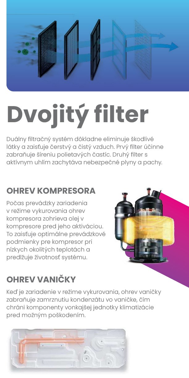 Zriedkavé Odmrazovanie: Vďaka inštalovanému ohrevu vaničky a kompresora minimalizuje klimatizácia potrebu častého odmrazovania, čím zabezpečuje plynulejšiu a efektívnejšiu prevádzku v zime.